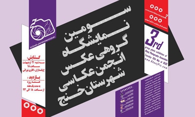 سومین نمایشگاه گروهی انجمن عکاسی شهرستان خنج در قالب نمایشگاه عکسی تحت عنوان «تصویرگری شعر» در فرهنگسرای نورایی شهر خنج واقع در استان فارس برپا میشود.