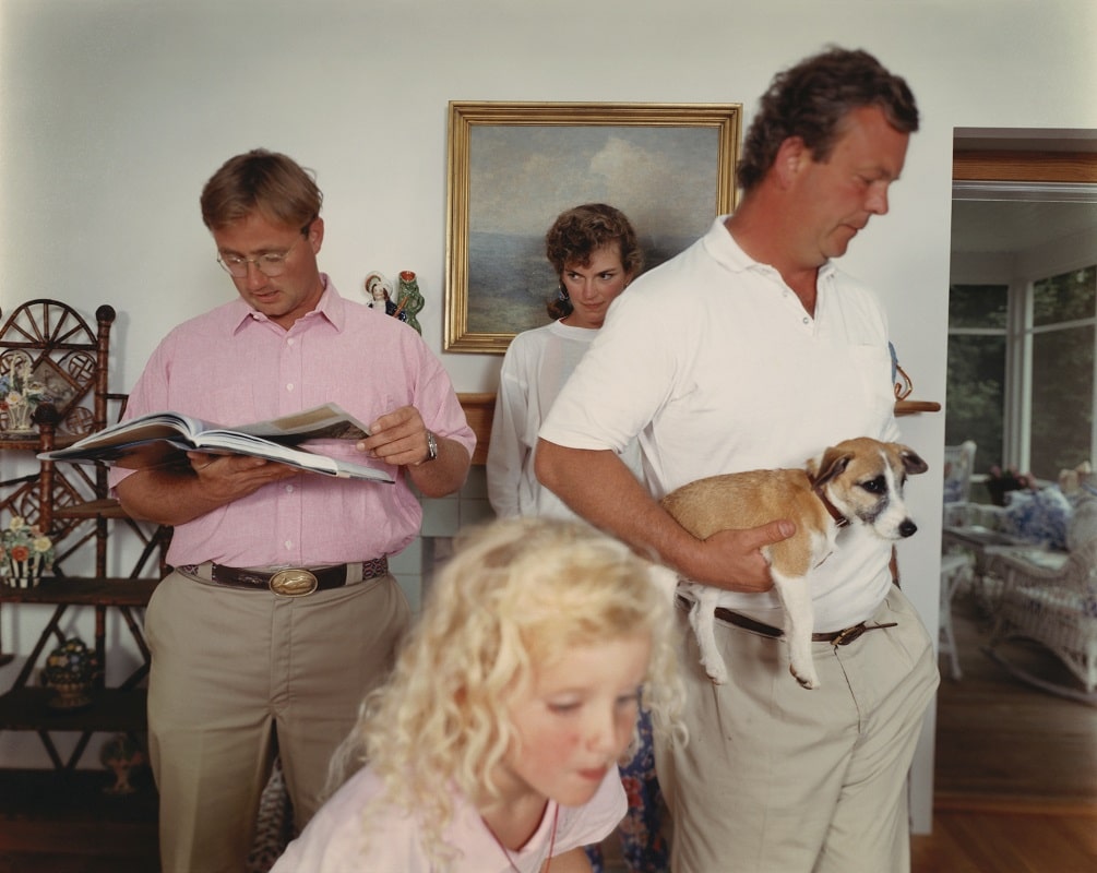 تینا بارنی از خانواده و دوستانش در محیط خانگیشان عکاسی میکند. در این عکس آنها در نسبت با یکدیگر اما جدا افتاده تصویر شدهاند. همگی سرگرم فعالیت خود هستند و تنها بهواسطهی رابطهی خانوادگی است که با هم مرتبط میشوند. این عکس یک صحنهی نمایش است، واقعیتِ صحنهپردازی شدهای که در آن بهوسیلهی اسباب و اثاثیهی خانگی، بستری برای یک سناریوی ابهامبرانگیز فراهم شده است. علت موفقیت عکس «منظره» این است که اثری حسابشده است؛ عکاس به تنش میان سوژهها اشاره میکند، اما همزمان این مشخصه را بهوسیلهی پیشپاافتادگی صحنه ماهرانه مهار و محدود میکند.
