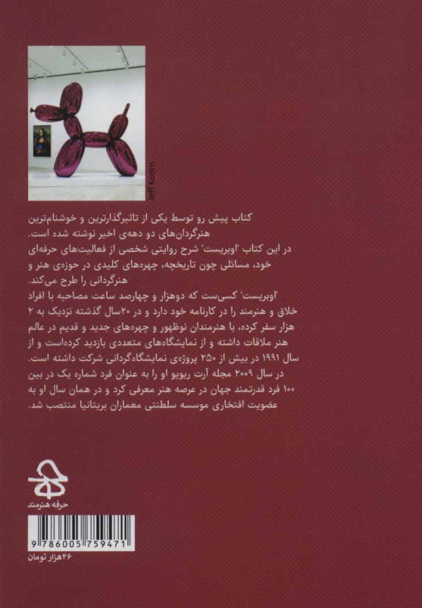 کتاب حاضر در همین راستا است. اوبریست در خلال فصلهای مختلف، در کنار شرح روایتی شخصی از فعالیتهای حرفهای خود، مسائلی چون تاریخچه، چهرههای کلیدی و حوزهی عمل «هنرگردانی» را طرح میکند. اما شاید پیش از همه، کار اصلی کتاب ارائه چشماندازی از تلاشهای افرادی است که با اعتقاد به نیروی تغییردهندهی هنرها، در پی «بهبود زندگی فردی» و «رونق محیط جمعی» انسانها در روزگار معاصر هستند.
